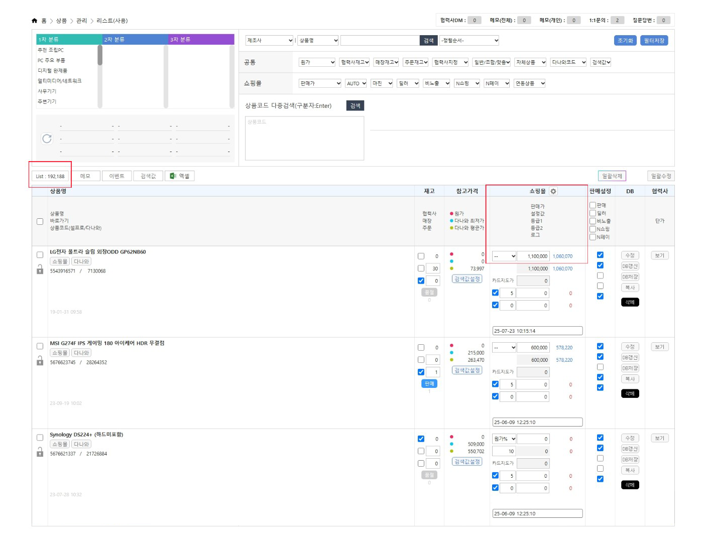 - 협력사와 연동을 통해 가격도 반자동으로 기본 전시 설정이 가능합니다.