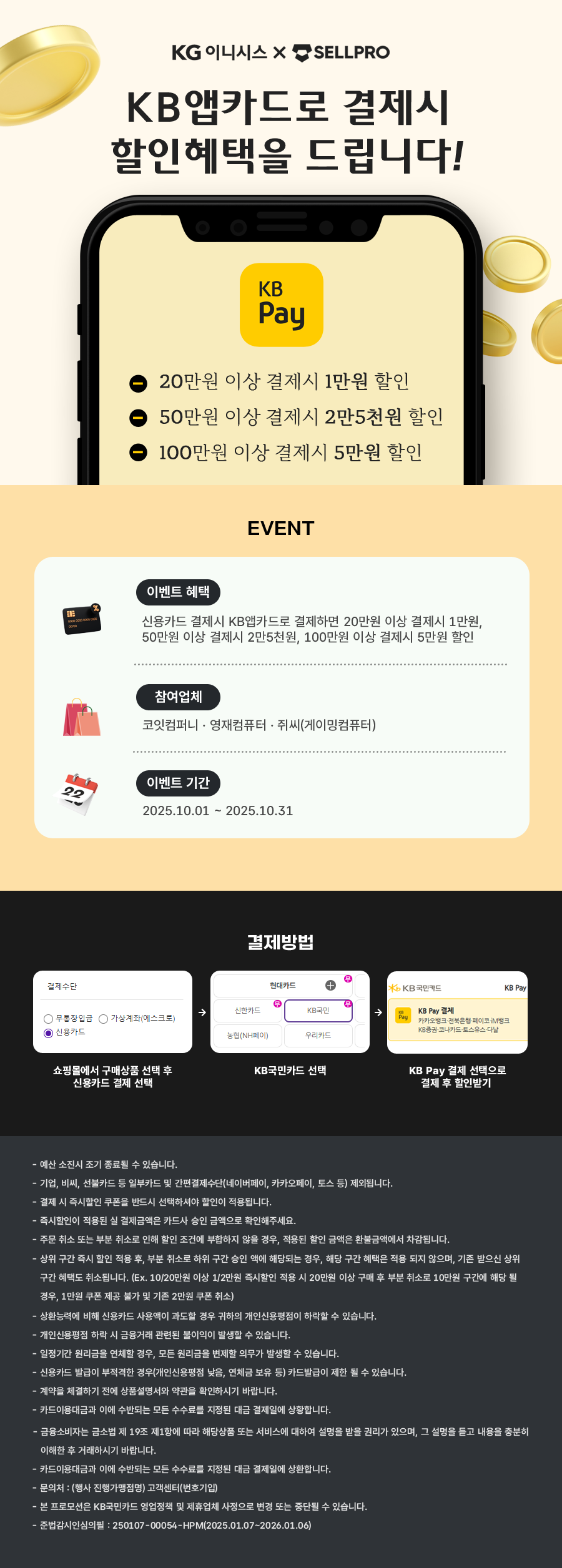 2025년 10월 1일부터 10월 31일까지 셀프로와 KG이니시스 결제 이벤트를 진행합니다.